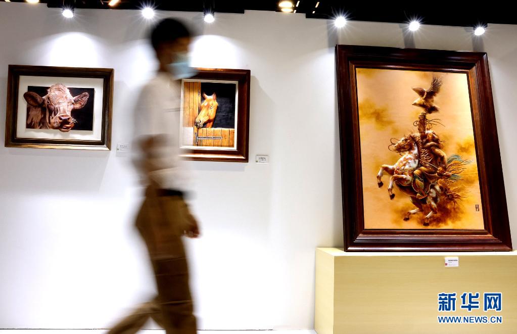 当日,“皮里乾坤——中国皮革文化艺术主题展”在上海汽车博物馆揭幕,现场展出170件(套)技艺精湛的皮雕、皮塑、皮革烙画以及皮革装置艺术品,吸引观众前来观赏。