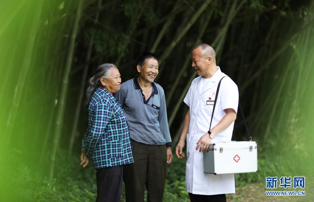 7月10日,在绥阳县茅垭镇中坪村,村民向张涛(右)询问接种新冠疫苗事宜。新华社发 (王长育 摄)