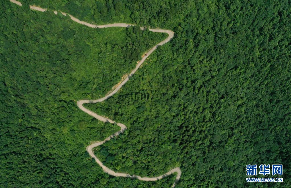 这是7月10日拍摄的张涛走村串寨的乡村公路(无人机照片)。新华社发 (王长育 摄)