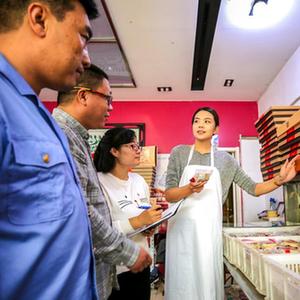 2019年11月5日,在广西柳州市融水苗族自治县良寨乡培洞村,纪检监察干部(右一、二、三)在检查扶贫道路施工情况。