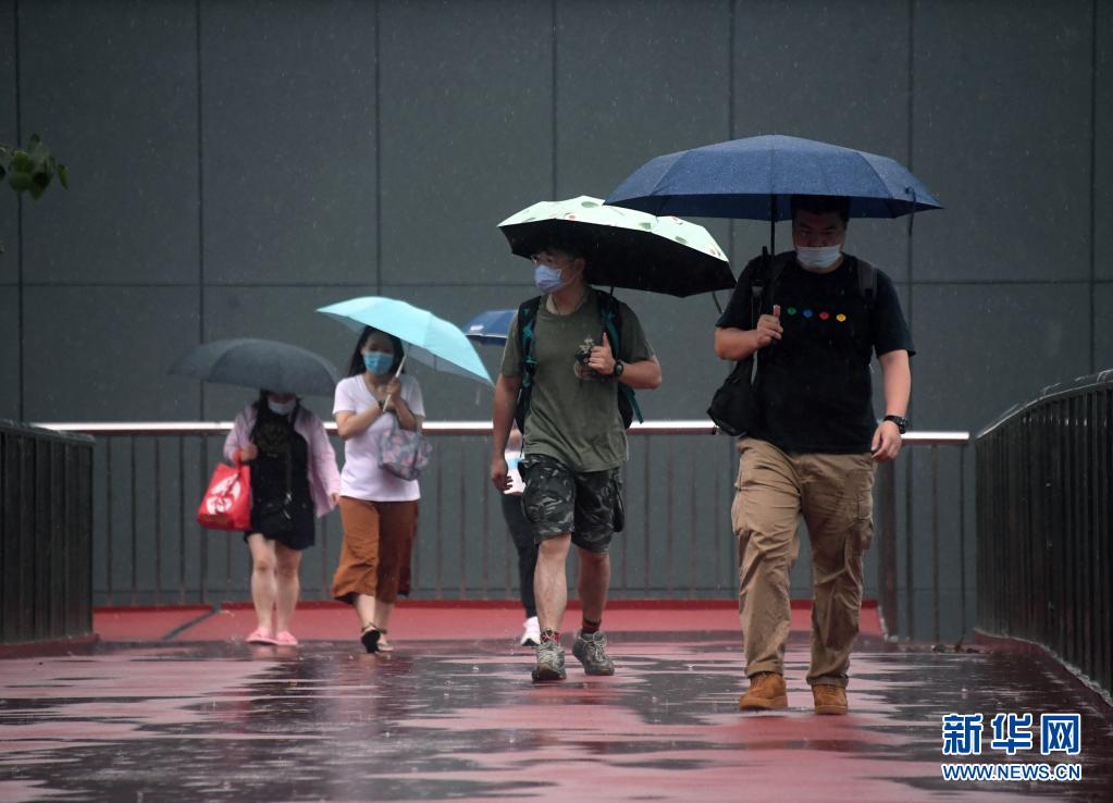 7月12日, 市民行走在北京市海淀区四通桥附近的一处天桥上。
