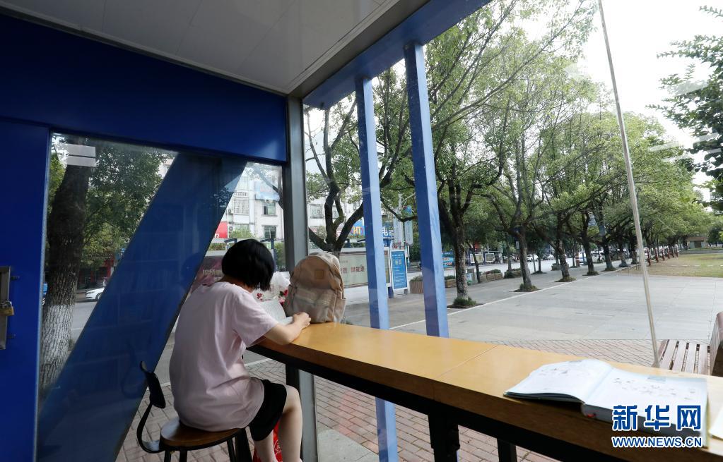 7月12日,读者在湖南省资兴市人民广场24小时自助图书馆读书。