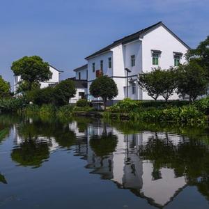 7月12日,空中俯瞰嘉善县大云镇的温泉景区(无人机照片)。新华社记者 徐昱 摄