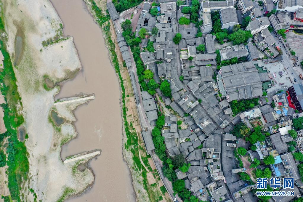 位于赤水河畔的贵州省遵义市习水县土城镇一景(4月22日摄,无人机照片)。