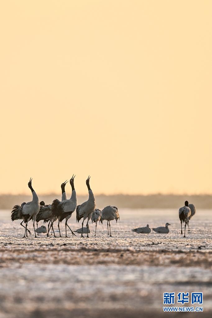 这是在贵州草海国家级自然保护区拍摄的黑颈鹤(1月13日摄)。