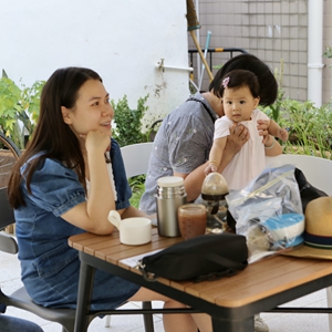 7月14日,在广东省中山市南朗镇左步村,游客在咖啡馆外乘凉。新华社记者 耿馨宁 摄