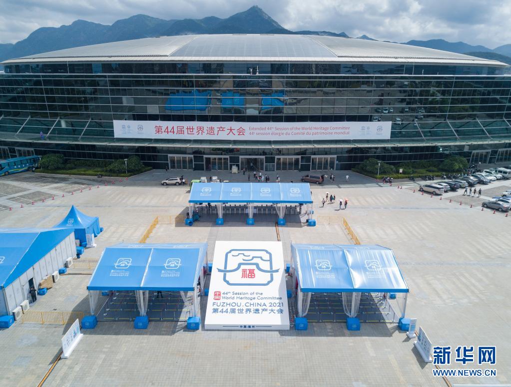 第44届世界遗产大会主会场海峡国际会展中心外景(7月15日摄,无人机照片)。