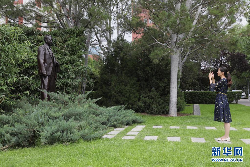 7月15日,一名科研工作者在拍摄中科院力学研究所内的钱学森雕像。