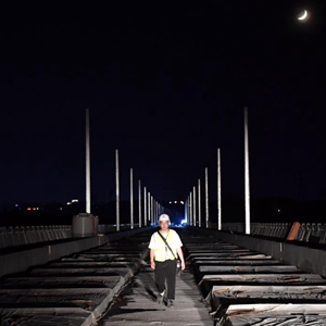 7月14日,中铁十一局技术人员检查无砟轨道底座板混凝土养护工作。