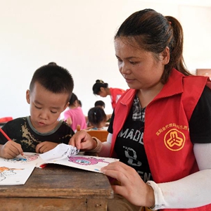 当日,广西宾阳县妇联组织的“妈妈课堂”在中华镇山鸡村“儿童之家”开课。“妈妈课堂”由当地“代理妈妈志愿者”对孩子进行陪护,并邀请青年志愿者开设安全教育、舞蹈、绘画、棋类、唱歌等辅导课程,让孩子们度过一个安全、快乐、有意义的暑假。