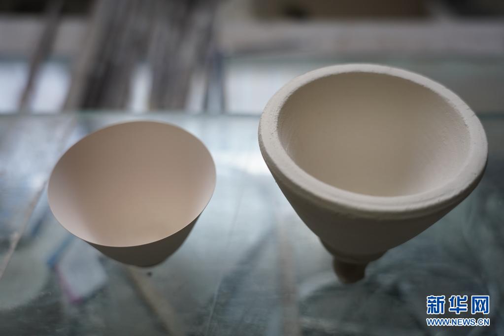 这是“利坯”前杯坯(右)和“利坯”后杯坯的对比图(7月14日摄)。新华社记者 周密 摄