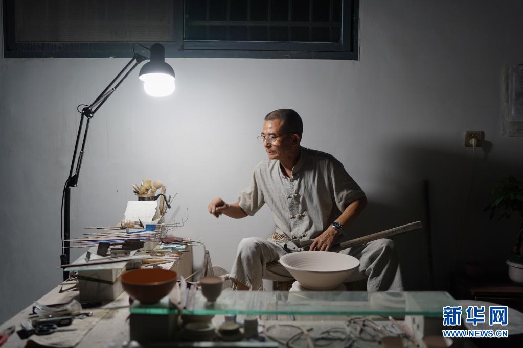 熊国安准备开始“利坯”(7月14日摄)。新华社记者 周密 摄