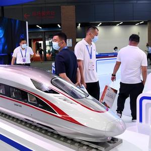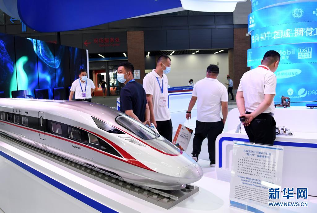 7月15日,参观者在2021新动能·青岛展览洽谈会线下主题展上参观。