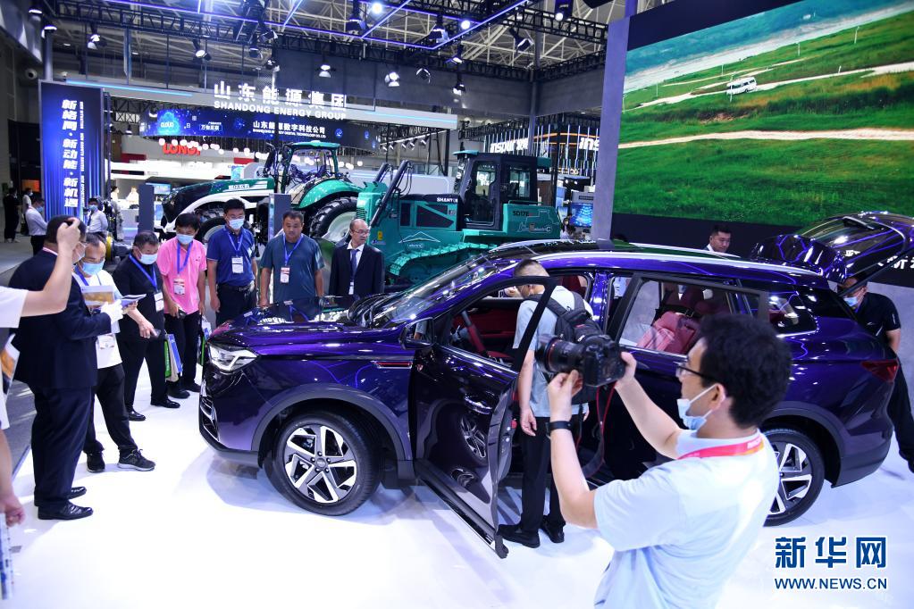 7月15日,参观者在2021新动能·青岛展览洽谈会线下主题展上参观。
