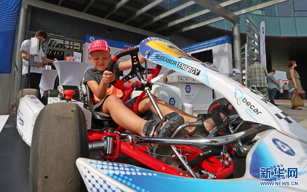 7月16日,人们在白俄罗斯明斯克郊区举办的电动交通日活动上体验电动车。