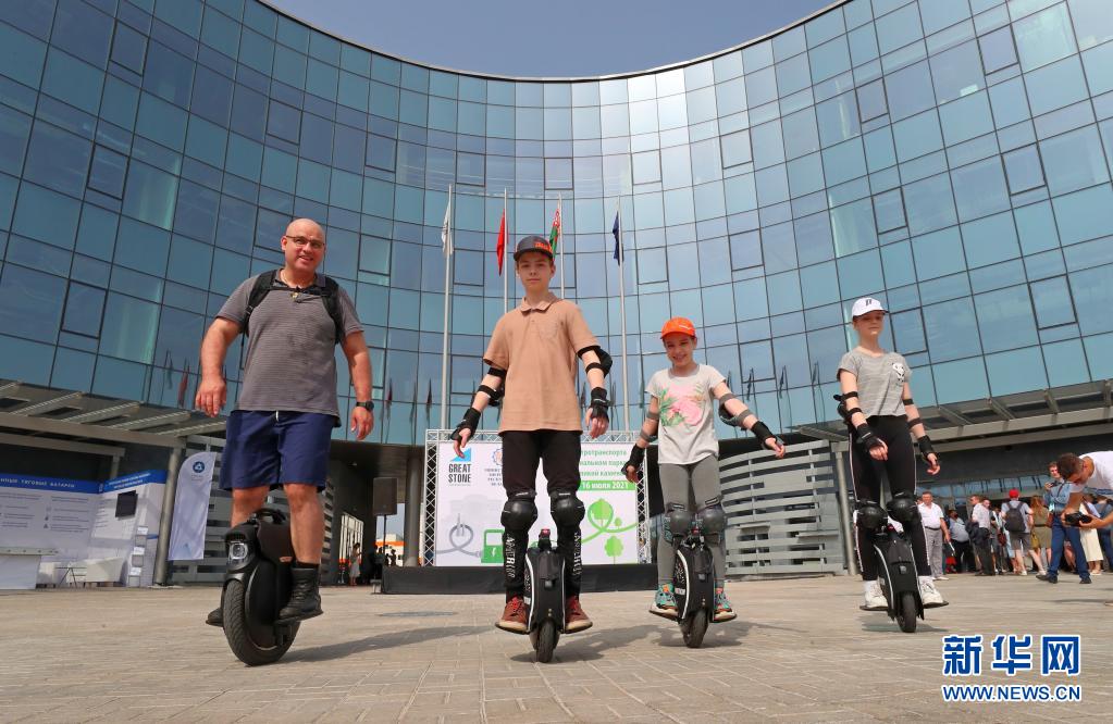 7月16日,人们在白俄罗斯明斯克郊区举办的电动交通日活动上体验电动独轮车。