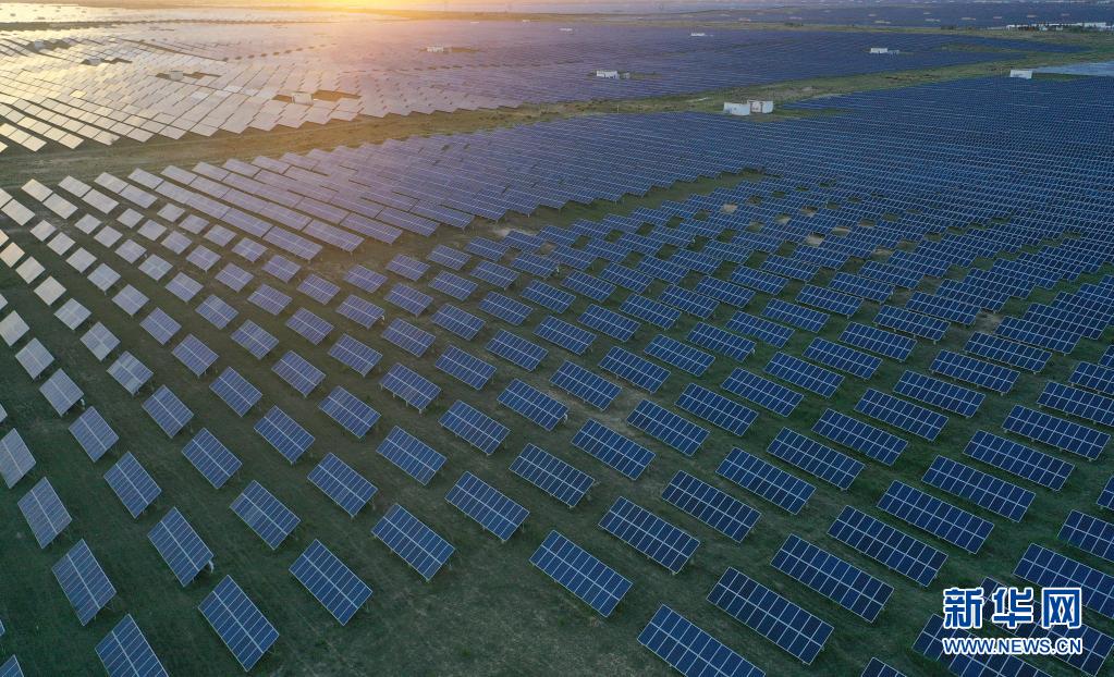 这是青海省海南藏族自治州共和县境内的大唐青海公司新能源分公司光伏电站一角(2020年7月7日摄,无人机照片)。