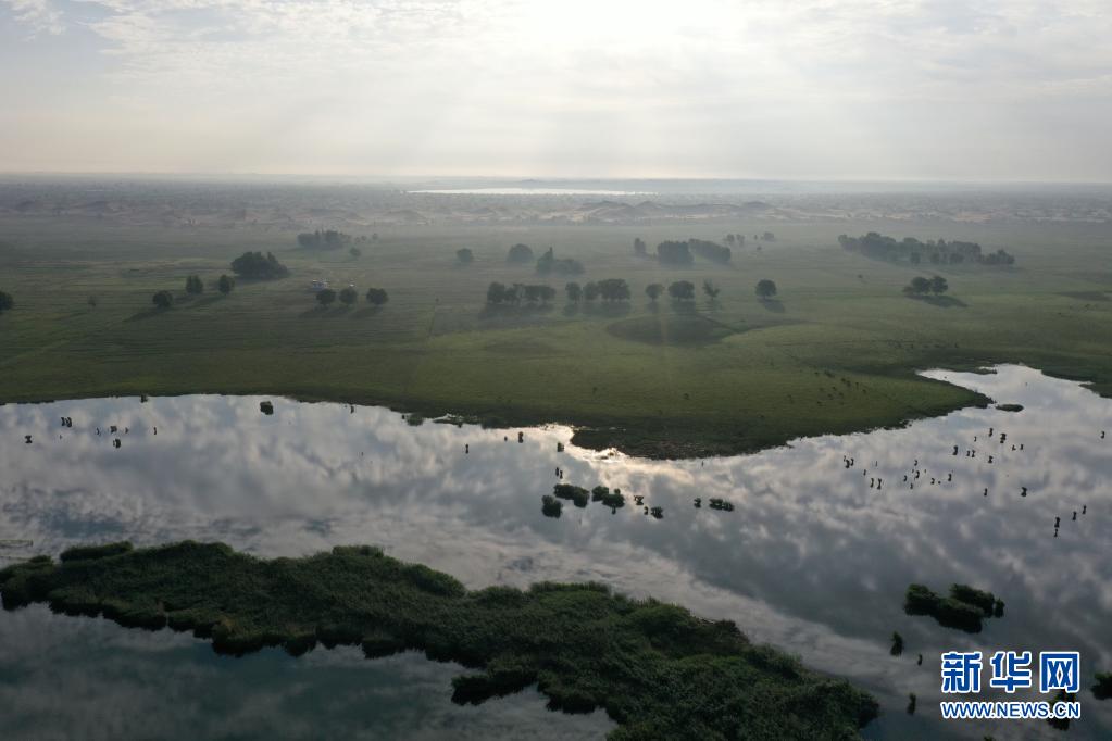 这是库布其七星湖景区(7月17日无人机拍摄)。