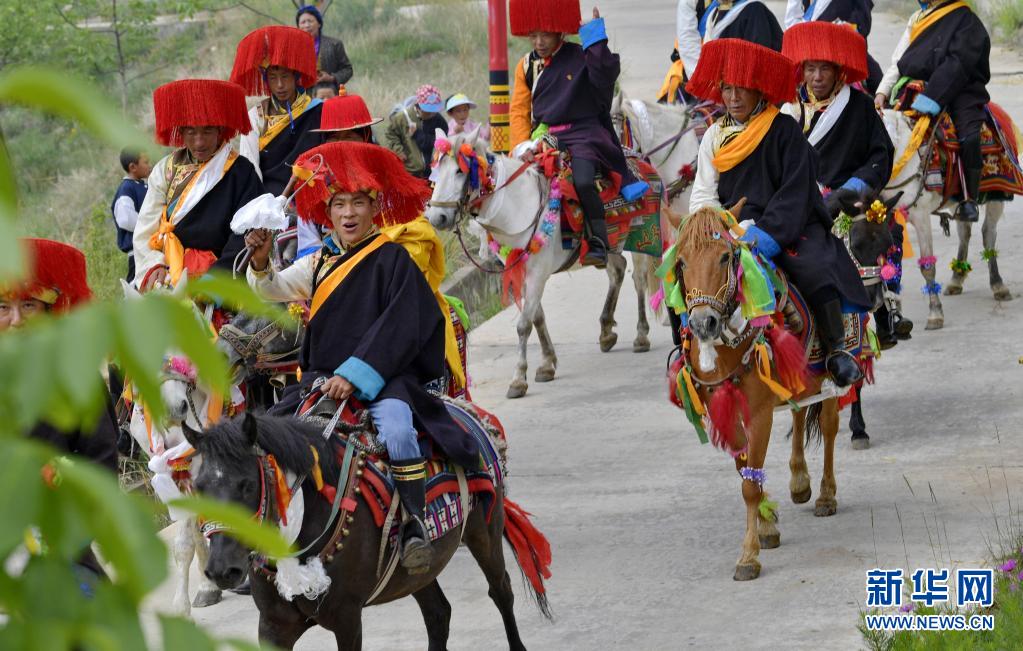 7月9日,易地扶贫搬迁新村——西藏山南市加查县冷达乡共康村的村民们身着盛装欢度“望果节”。“望果节”是西藏农区在青稞麦田成熟之际祈求丰收的节日,据传有1500多年的历史,因各地青稞成熟时间不一,“望果节”时间也各异。