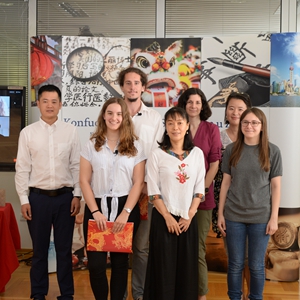7月17日,在克罗地亚首都萨格勒布,参加“汉语桥”中文比赛的萨格勒布大学孔子学院师生和评委合影。