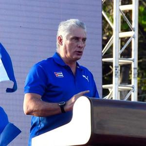 7月17日,古共中央第一书记、古巴国家主席迪亚斯-卡内尔在哈瓦那举行的爱国集会上发表讲话。