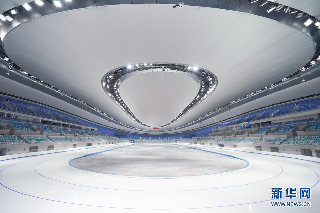 这是2021年1月22日拍摄的国家速滑馆“冰丝带”内景。