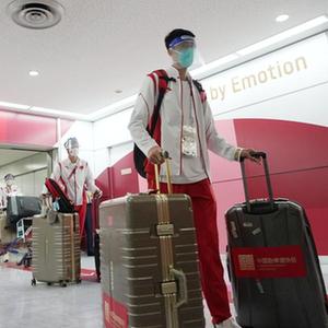 当日,参加东京奥运会的中国体育代表团部分成员抵达东京。