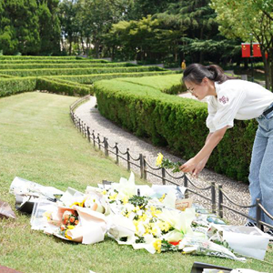 7月19日,华东师范大学学生时硕在上海龙华烈士陵园赵世炎墓碑前献花。 当日是赵世炎烈士牺牲94周年纪念日。上海市龙华烈士陵园组织开展了一场特殊的纪念活动,以缅怀赵世炎烈士,传承英烈革命精神。 新华社记者 王翔 摄