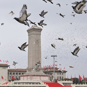 7月1日上午,庆祝中国共产党成立100周年大会在北京天安门广场隆重举行。这是庆祝大会现场和平鸽展翅高飞。新华社记者 孙非 摄
