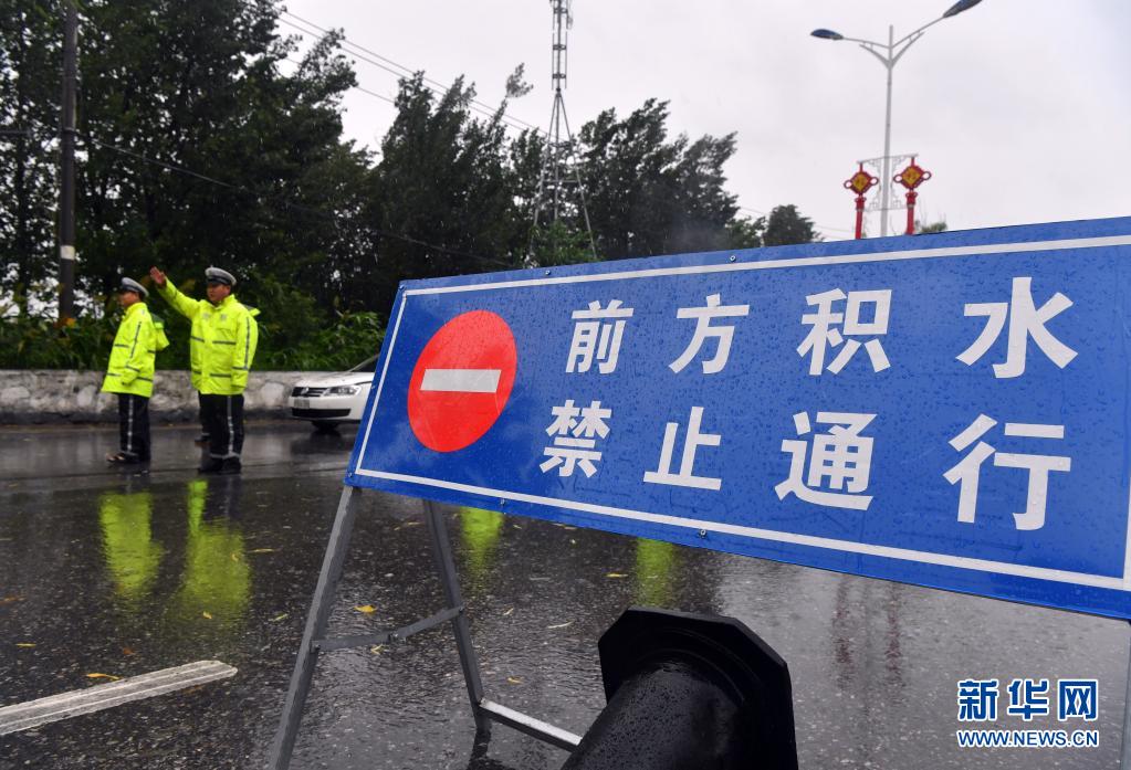 7月20日,在焦作市文昌路新月铁路桥积水处,交警在劝返往来车辆。