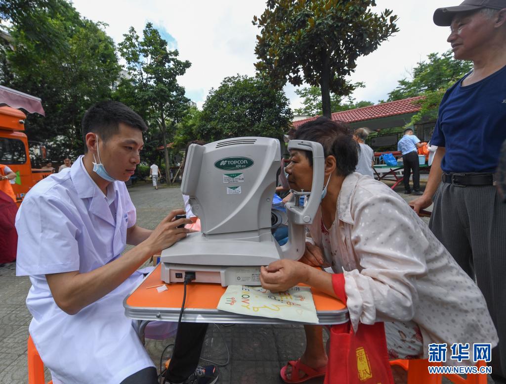 7月21日,在湖州市吴兴区飞英街道吉山四社区内,“一元·益愿”志愿者为社区居民提供医疗服务。新华社记者 徐昱 摄