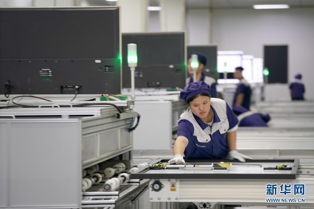 7月21日,河北邢台一家太阳能有限公司工人在检测太阳能组件质量。