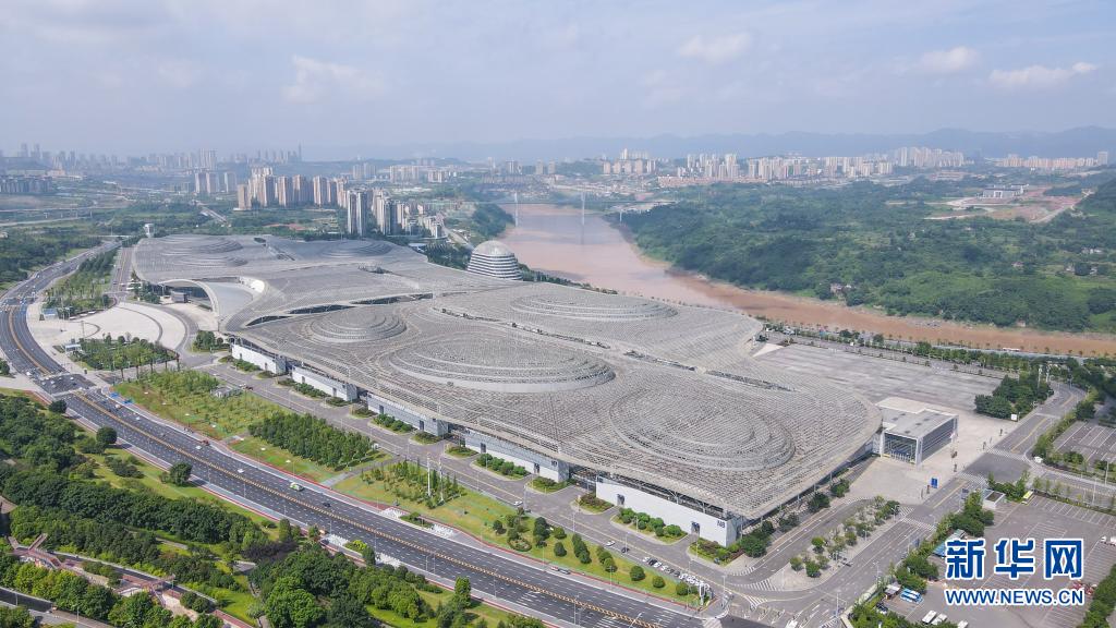 位于重庆两江新区的重庆国际博览中心周边风景(7月20日摄,无人机照片)。新华社记者 徐钦 摄