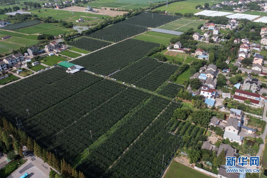 7月22日拍摄的殷家漾村千亩梨园(无人机照片)。