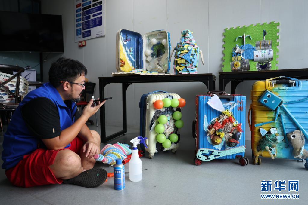 7月20日,在自己经营的潜水俱乐部,韩汉通过电话对接业务。新华社记者 王南 摄