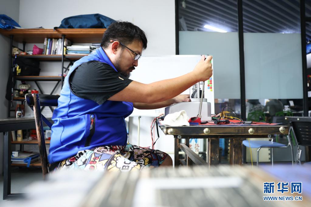 7月20日,在自己经营的潜水俱乐部,韩汉在帮客户调试设备。新华社记者 王南 摄