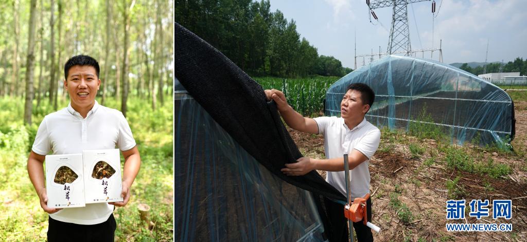 拼版照片:左图为马敬岳在展示包装好的赤松茸;右图为在山西省长子县田家沟村,马敬岳在赤松茸培植基地整理保温被(7月15日摄)。今年29岁的马敬岳是山西省长子县人,2014年一次偶然的机会,大学刚毕业的他得知家乡推出针对返乡创业人员的优惠政策,就回到家乡自主创业。他采取“基地+农户”的经营模式,通过土地流转、基地务工等方式,推进赤松茸种植规模化发展。