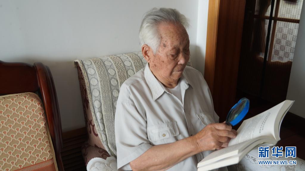 郭瑞祥在大连家中读书(7月7日摄)。新华社发(刘丹 摄)