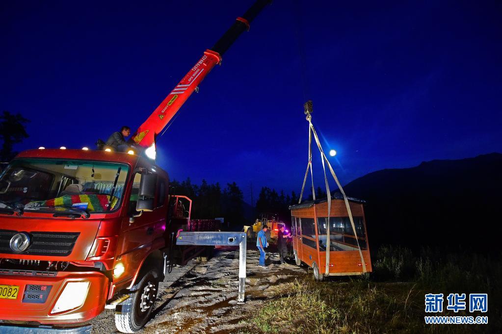 工人在喀纳斯景区运输物资(7月21日摄)。