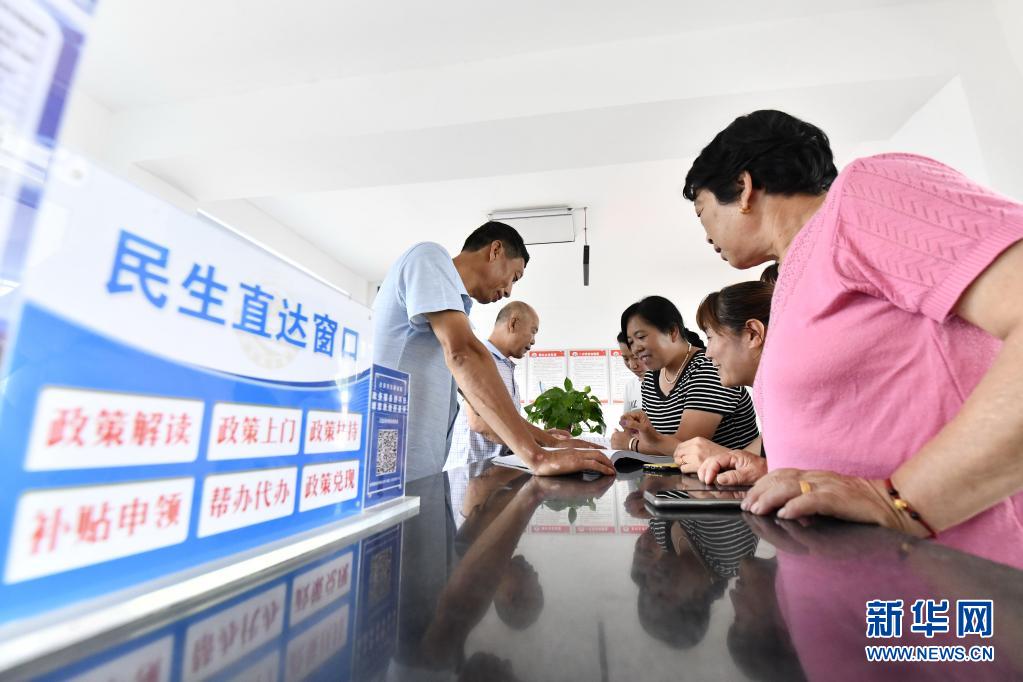 7月22日,河北省迁安市万宝沟村村民在综合服务站内办理业务。