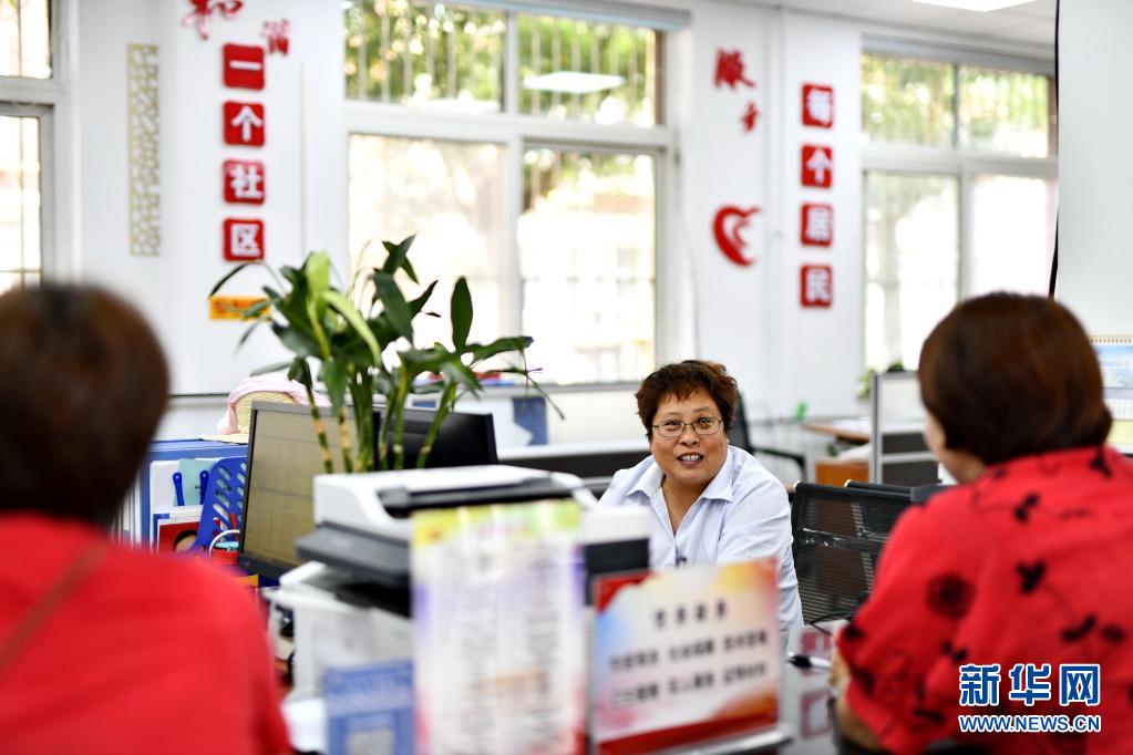7月22日,河北省迁安市兴安街道明珠社区综合服务站的工作人员在给居民讲解帮办事项。