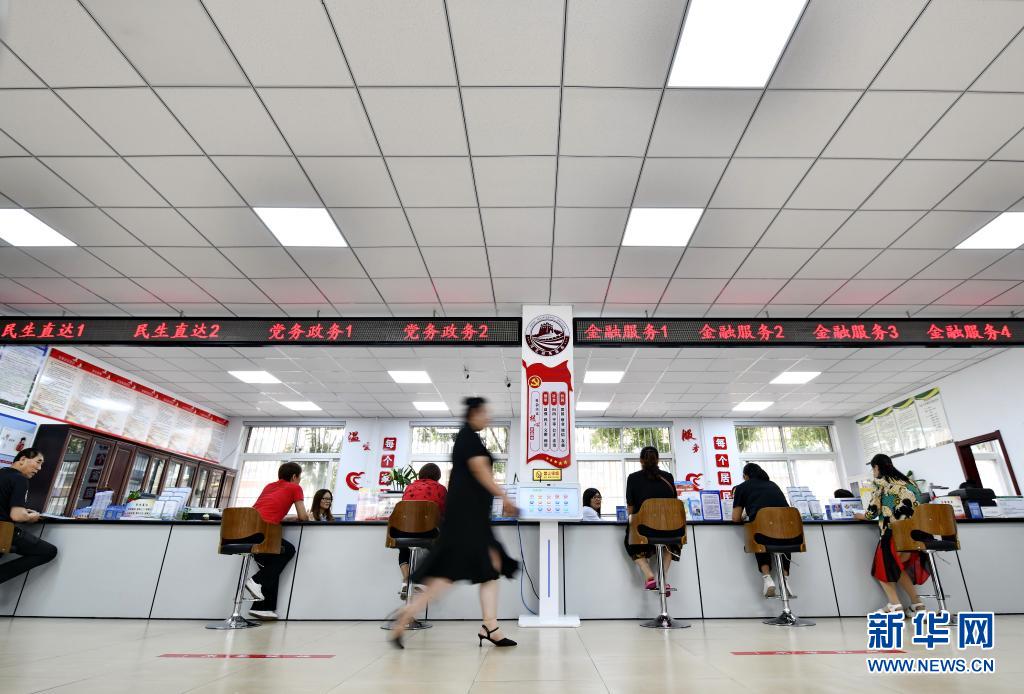 7月22日,居民在河北省迁安市兴安街道明珠社区综合服务站内办理业务。