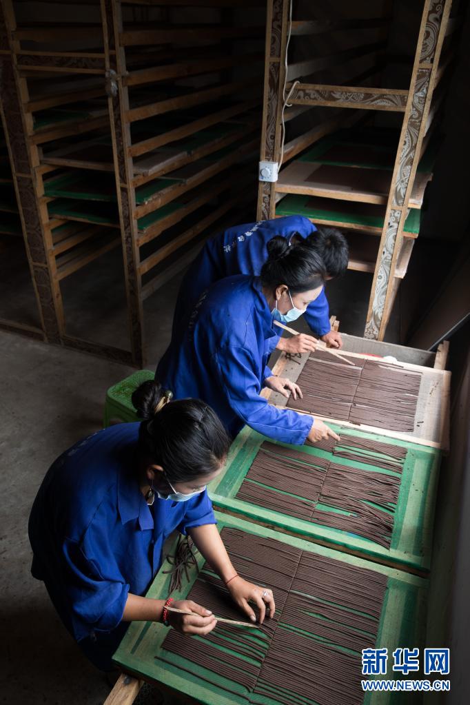 7月22日,在塔林村藏香合作社生产车间,村民在制作藏香。