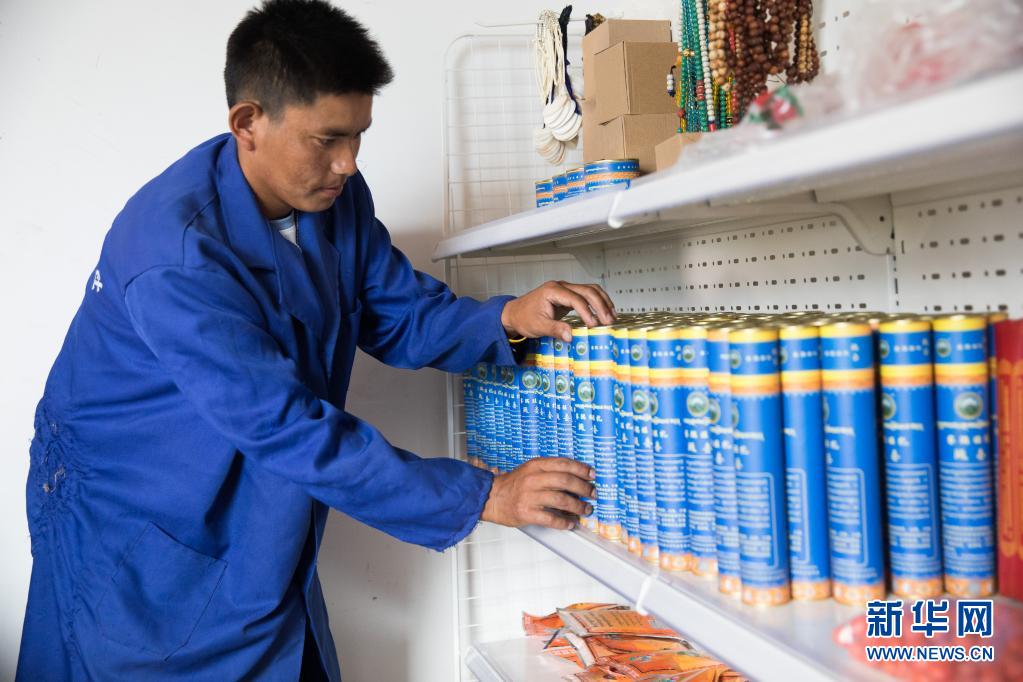 7月22日,在塔林村藏香合作社,村民检查包装好的藏香。