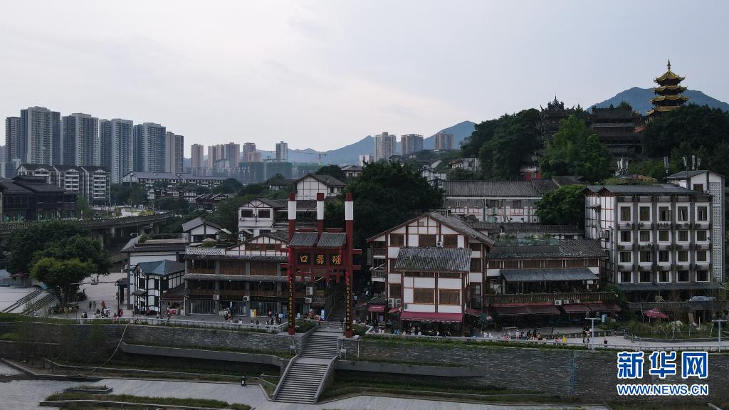 游客在重庆磁器口古镇游览(7月21日摄,无人机照片)。