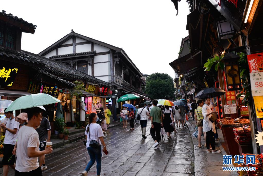 游客在重庆磁器口古镇游览(7月21日摄)。