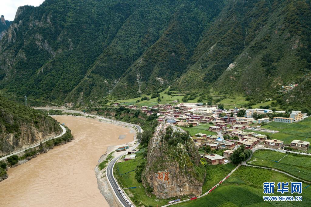 金沙江畔的岗托村(7月21日摄,无人机照片)。
