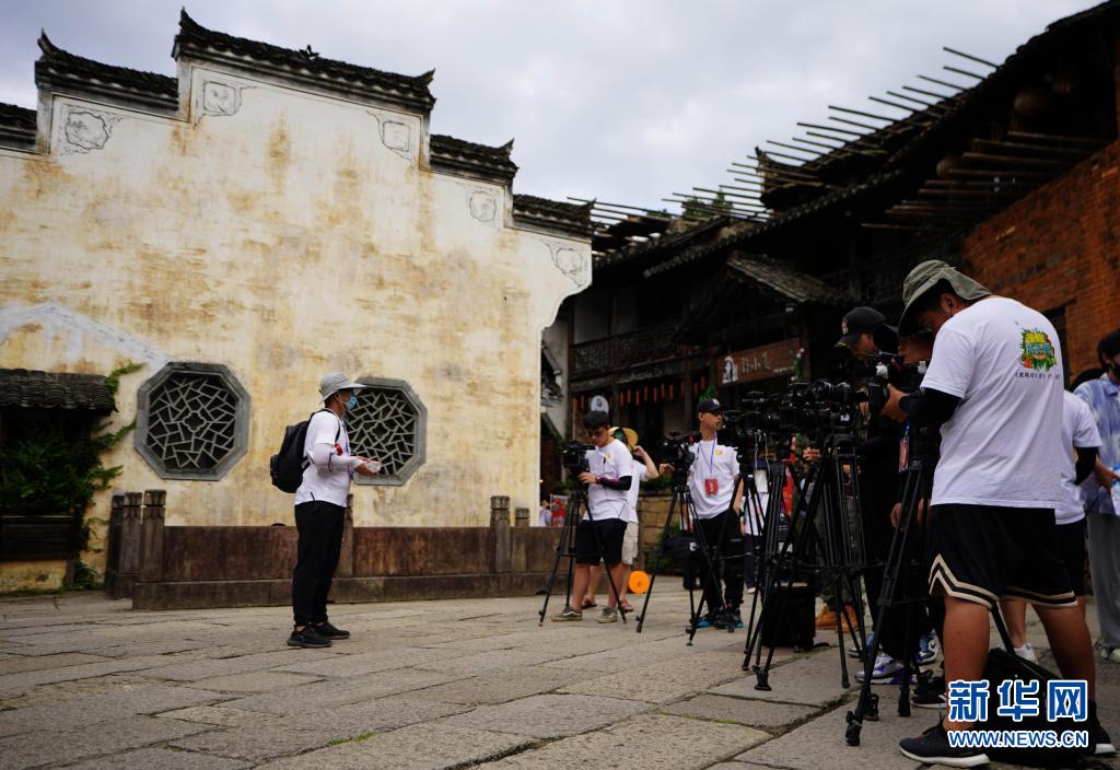 7月23日,工作人员在婺源篁岭拍摄节目。