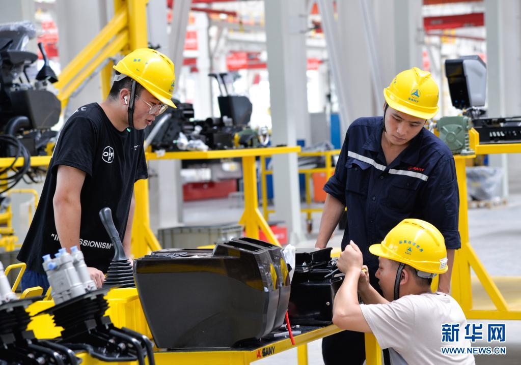 工人在位于重庆两江新区的三一集团西南地区首个智能化“灯塔工厂”项目内作业(7月19日摄)。新华社记者 徐钦 摄