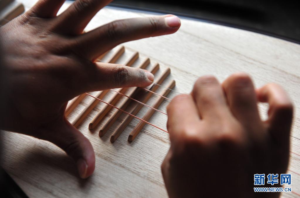 7月22日,河北省肃宁县一家乐器生产企业的工人在制作琵琶。